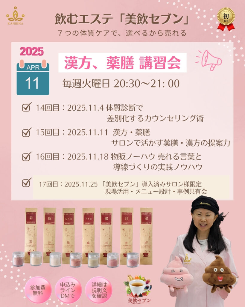 📅 【KANBINA 美飲セブン講習会|毎週火曜 夜開催】