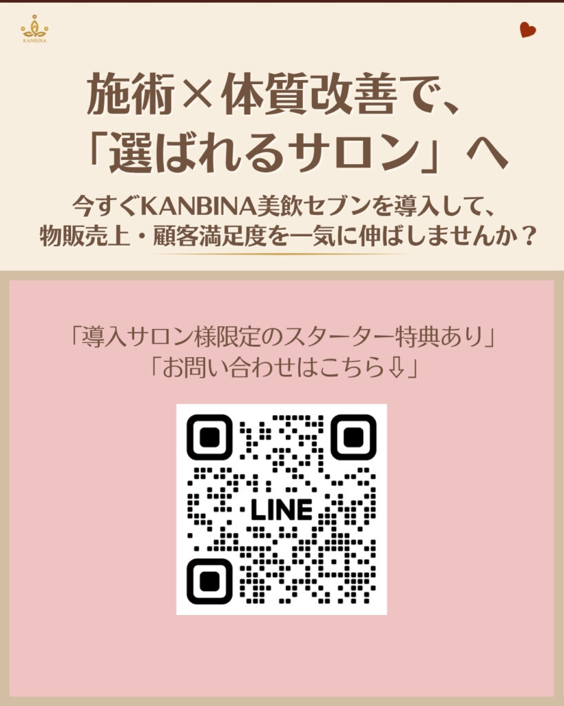 体の中から美しさを育むKANBINAの「7つ体質別・飲むエステ」を、BWJ大阪の会場で実際に試していただけます。