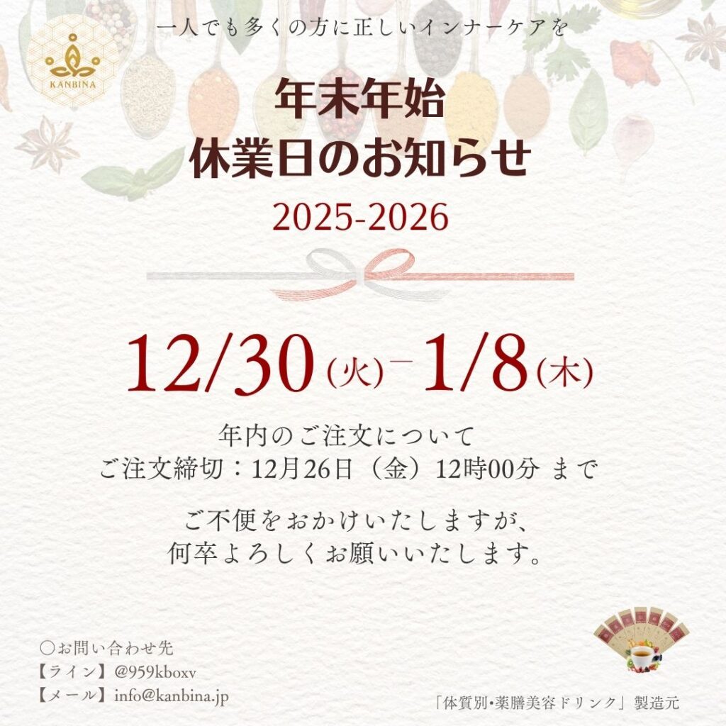 ✨【KANBINA 年末年始休業のお知らせ】✨