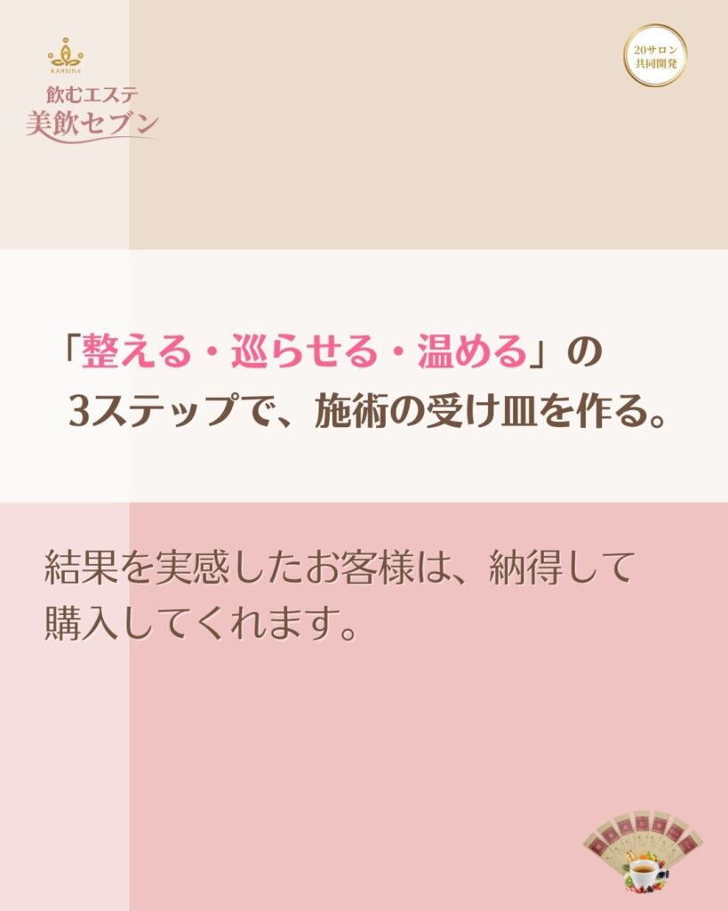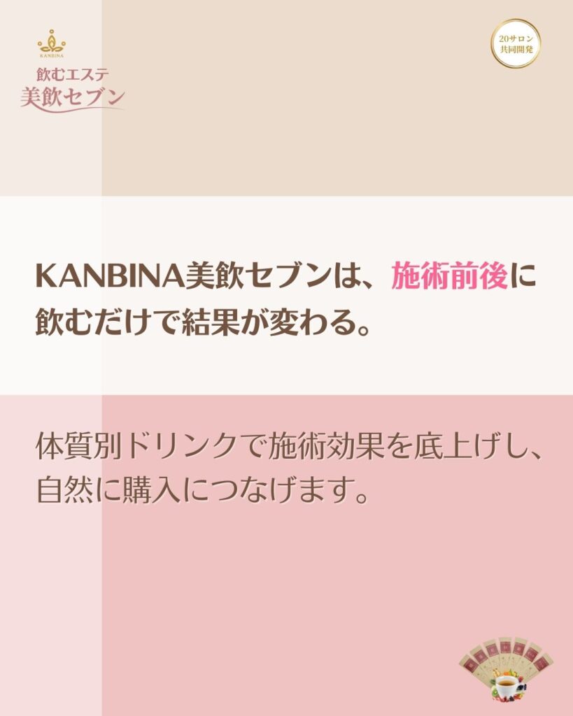 KANBINA美飲セブンは、施術前後に飲むだけで結果を底上げする体質別ドリンク。