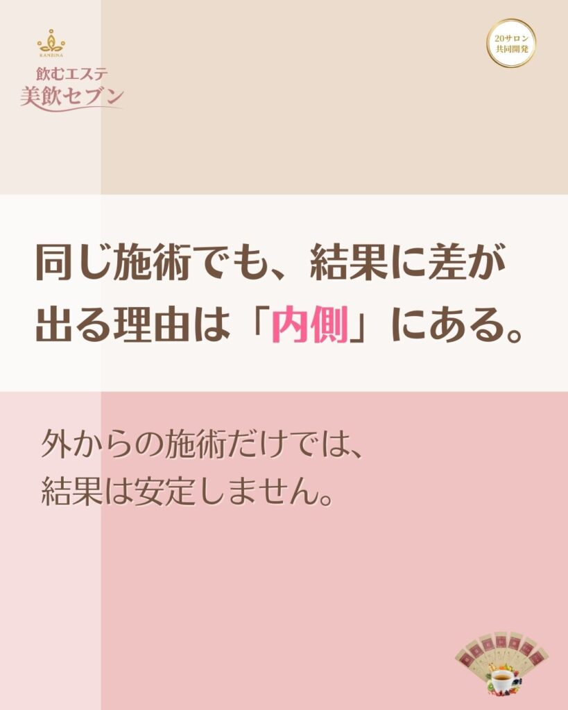 KANBINA美飲セブンは、1杯で体質別に巡り・温度・疲労を整え、施術効果を最大化。
