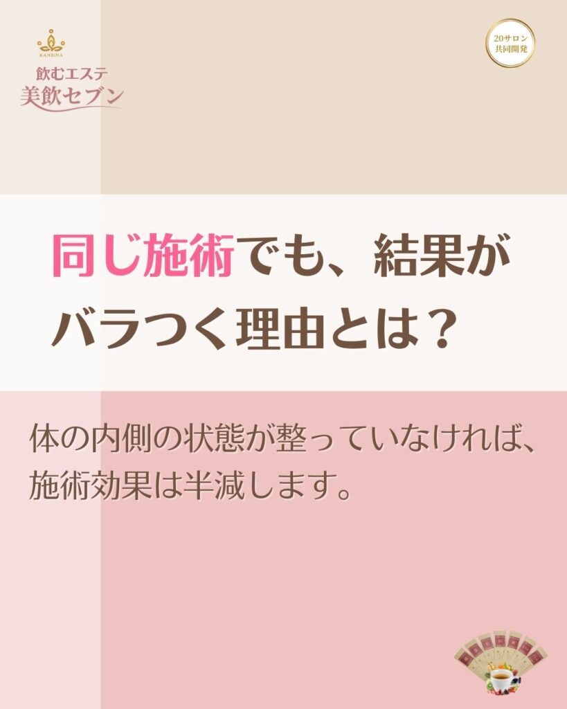 KANBINA美飲セブンの施術前1杯で、内側から巡り・温度・体調を整え、結果の安定化をサポート。