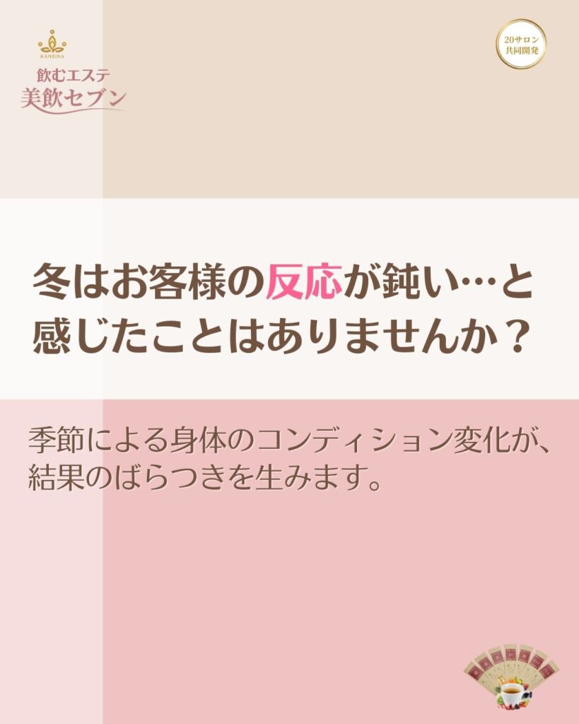 #KANBINA#美飲セブン#飲むエステ#薬膳美容ドリンク #施術前ドリンク #冬の美容対策#サロン導入 #施術連動物販 #体質改善 #温活サロン