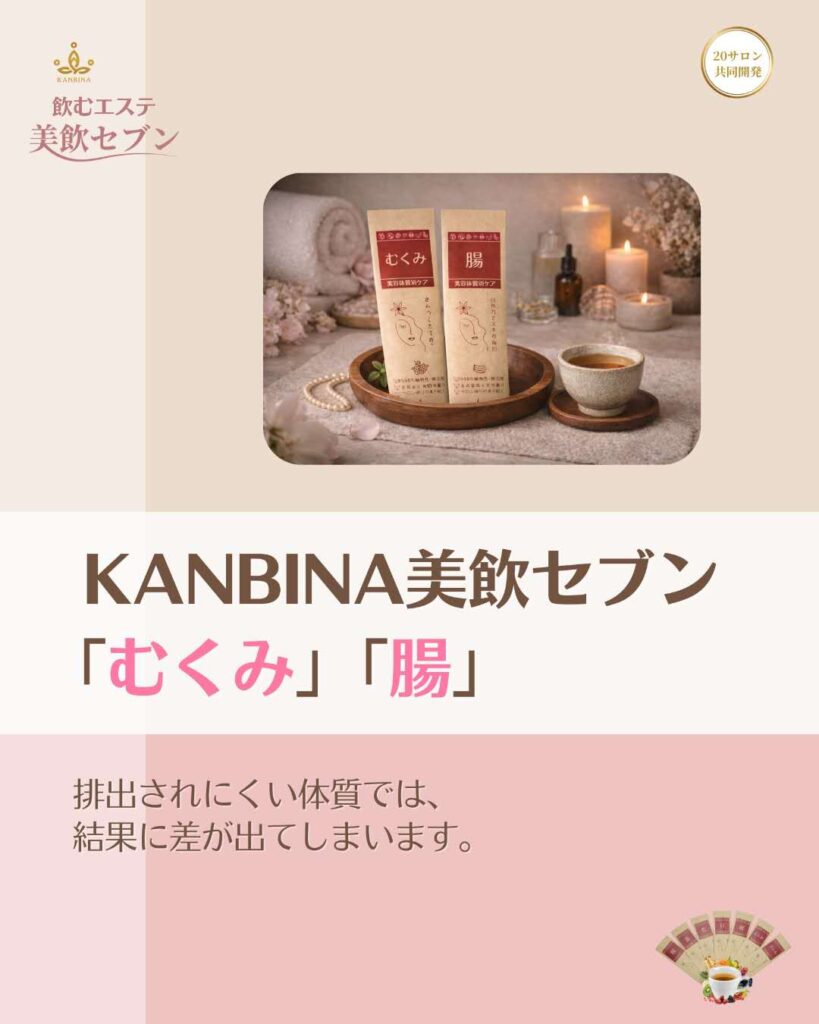 施術前にKANBINA美飲セブン「むくみ」「腸」を提供することで、