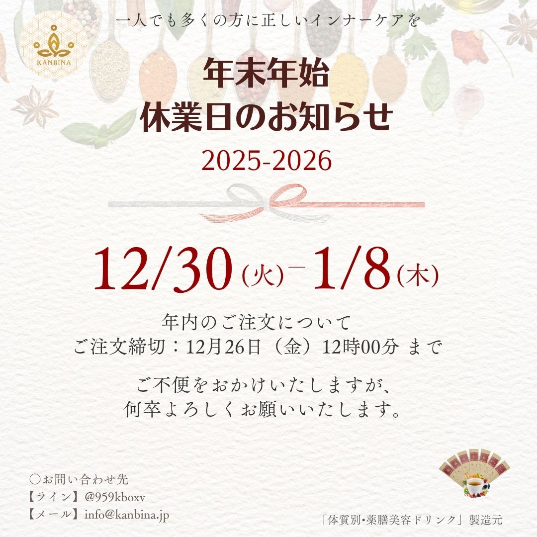 ✨【KANBINA 年末年始休業のお知らせ】&…